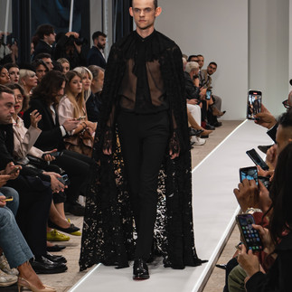 di pizzo, e anche un particolare giubbotto di pelle con l’immagine della Kahlo. Ad applaudire il designer,