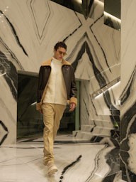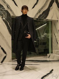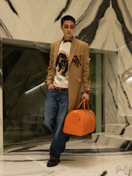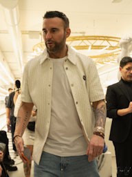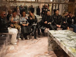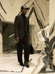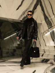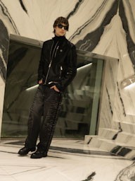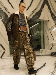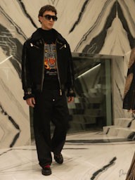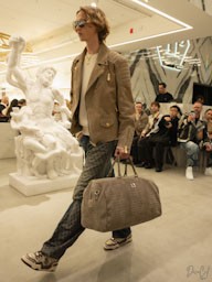 La collezione maschile mantiene una forte identità classica ma con lo spirito ribelle tipico della maison. Giacche in pelle e shearling dominano la scena insieme a capi sartoriali in tonalità neutre, mentre accessori colorati introducono tocchi di energia contemporanea.