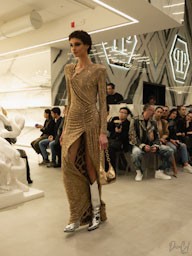 Quando cala la sera, l’universo PHILIPP PLEIN si accende. Abiti scintillanti, minigonne affusolate e l’iconico taglio sartoriale della maison creano look seducenti e spettacolari.