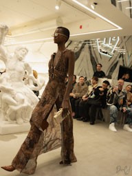 Ma la vera anima di questa collezione è il viaggio. PHILIPP PLEIN immagina una comunità globale di amanti del lusso in movimento: vacanze sotto il sole d’inverno tra foglie di palma e stampe leopardate, oppure momenti après-ski sulle piste più esclusive, avvolti in pellicce sintetiche e giacche da sci ultra-glamour. Ogni look racconta una destinazione, un momento, uno stile di vita.