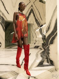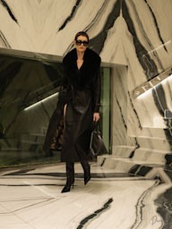 Per il giorno, la collezione propone silhouette decise e tagli sartoriali impeccabili. Gli outfit vengono completati da stivali alti al ginocchio, modelli biker e cowboy che aggiungono personalità e forza. Le borse, declinate in tonalità morbide e raffinate, diventano il dettaglio che amplifica il fascino della stagione.