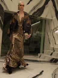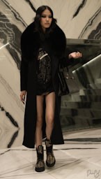 La palette cromatica gioca con contrasti magnetici: look monocromatici dal fascino urbano si intrecciano con ricche tonalità gioiello e denim strutturati. Il risultato è una collezione che esalta la raffinatezza metropolitana della stagione, mantenendo sempre quell’inconfondibile spirito rock che da anni definisce l’universo creativo del brand.